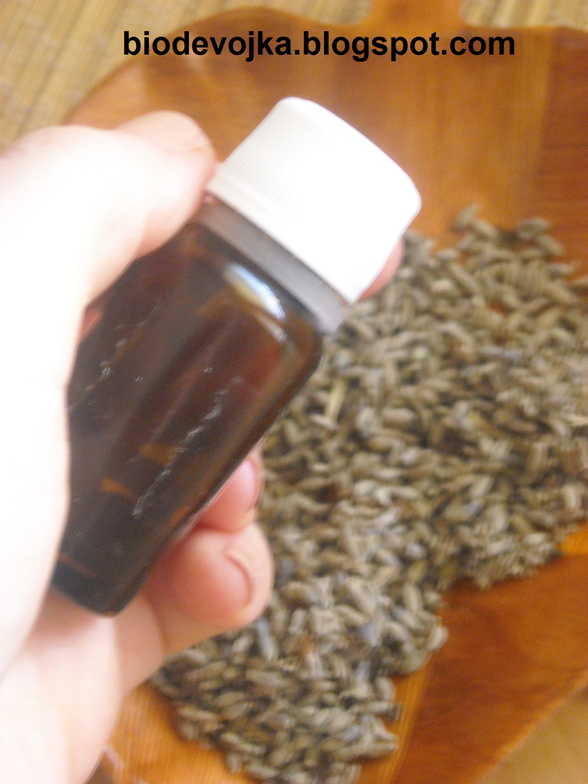 3. Етерично масло од лаванда во служба на домот - доколку пешкирите станале тврди од честото перење, еве ви еден природен омекнувач на база на лаванда или етерично масло од лаванда. Верувајте не само што ги омекнува пешкирите, туку им дава прекрасен мирис. Овој препарат може да го подготвите на два начина а потребни ви се следнива состојки: прв начин: 1 шоља свежа лаванда или половина шоља сува бел дестилиран оцет Во една тегла се става лавандата и комплетно се покрива со оцетот. Пред да се затвори капакот од теглата доколку е метален прво ставете еден целофан со ластик па потоа металниот капак затоа што металот реагира со оцетот. Доколку ставите пластичен капак не е потребно да се стави целофан. Вака подготвената тегличка треба да стои 3 до 4 недели на суво и темно место со повремено протресување. По истекот на времето на отсојување течноста се процедува и се чува во фрижидер во пластично или стаклено шише. втор начин: етерично масло од лаванда бел дестилиран оцет Ова е најбрзиот начин кој може да го подготвите пред секое перење. Потребна ви е супена лажица бел оцет во која ќе додадете две до три капки етерично масло од лаванда (во зависност од количината на пешкирите што ќе ги перете може да ја удвостручите дозата ако станува збор за поголема количина значи две лажици оцет со 5-6 капки етерично масло од лаванда). Повеќе за ова пишував во http://biodevojka.blogspot.mk/2015/02/blog-post_17.html - доколку сакате природен освежувач за простории, може многу лесно да направите еден сами. Во едно празно спреј шише од 100 мл. ставете 25 капки етерично масло од лаванда, а потоа додадете една супена лажица вотка. Убаво промешајте ги овие две состојки. Наполнете го остатокот од шишето со деминерализирана вода (оставете малку простор не до горе). Целта на алкохолот во овој рецепт е подобро да ги врзе етеричното масло и водата. Овој спреј може да го користите за освежување на простории или како спреј за мирис на постелнини, облека и останати ткаенини. Сетете се убаво да го протресете шишенцето пред секоја употреба. Повеќе за постапката може да прочитате на http://biodevojka.blogspot.mk/2015/03/blog-post_11.html - наместо вештачките мириси кои се повеќе штетни отколку корисни, зимно време во порцеланските садови за освежување на простории кои обично ги држиме до парното, во водата додадете неколку капки етерично масло од лаванда која не само што ќе направи домот убаво да мириса, туку и позитивно ќе делува врз психата и ќе ве релаксира. - доколку сакате вашите фиоки со долен веш, или вашите шифоњери со облека убаво да мирисаат, во тој случај купете суви цветови од лаванда и ставете ги во една украсна платнена (или од друг материјал) торбичка и ставете ја во фиоките или шифоњерите. За да го зголемите мирисот, во самата лаванда додајте и неколку капки етерично масло од лаванда. Ете драги мои, се надевам дека сега сфативте зошто етеричното масло од лаванда треба да се најде во секој дом. Се надевам дека ви се допаднаа овие совети и дека ќе ги примените. Вие како и секогаш оставајте ваши коментари под самиот текст доколку имате искуство со ова етерично масло, доколку за нешто го користите, или пак доколку имате било какво прашање во врска со оваа тема. Ве гушкам сите и до следната статија. Вики
