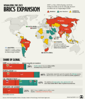 Моментални членки на брикс 1. Brazil 2. Russia 3. India 4. China 5. South Africa 6. Egypt 7. Ethiopia 8. Iran 9. UAE Официјално членки кои аплицирале за во брикс и чекаат одговор 11. Algeria 12. Azerbaijan 13. Bahrain 14. Bangladesh 15. Belarus 16. Bolivia 17. Cuba 18. Kazakhstan 19. Kuwait 20. Malaysia 21. Pakistan 22. Palestine 23. Senegal 24. Thailand 25. Turkey 26. Venezuela 27. Yemen 28. Zimbabwe Земји кои покажале интерес за да поднесат да се придружат кон брикс 29. Angola 30. Cameroon 31. Central African Republic 32. DR of the Congo 33. Congo 34. Ghana 35. Nigeria 36. South Sudan 37. Sudan 38. Tunisia 39. Uganda 40. Colombia 41. El Salvador 42. Nicaragua 43. Peru 44. Afghanistan 45. Indonesia 46. Iraq 47. Laos 48. Myanmar 49. Sri Lanka 50. Syria 51. Vietnam За да сватите дали овие земји доколку направат нова валута би влијаеле врз доларот кој воглавно се држи поради користење како петро долар List of 10 Countries With the Largest Oil Reserves in the World Venezuela Saudi Arabia Iran Canada Iraq United Arab Emirates Kuwait Russia Libya United States of America Светски резерви на природен гас Russian Federation 37.4 (19.9%) 2. Iran 32.1 (17.1%) 3. Qatar 24.7 (13.1%) 4. Turkmenistan 13.6 (7.2%) 5. US 12.6 (6.7%) 6. China 8.4 (4.5%) 7. Venezuela 6.3 (3.3%) 8. Saudi Arabia 6.0 (3.2%) 9. United Arab Emirates 5.9 (3.1%) 10. Nigeria 5.5 (2.9%) 11. Iraq 3.5 (1.9%) 12. Azerbaijan 2.5 (1.3%) 13. Canada 2.4 (1.3%) 14. Australia 2.4 (1.3%) 15. Kazakhstan 2.3 (1.2%) 16. Algeria 2.3 (1.2%) 17. Egypt 2.1 (1.1%) 18. Others 18.1 (9.6%) Дали брикс предтавува закана за западот во воена смисла - не. Во економска смисла западот ќе ги изгуби сите колонии, најголем дел од нафтата во светот ќе биде во брикс исто и гасот. Доколку се спојат сите овоие членки би имале некаде околу 60 проценти од светската популација или некаде околу 4 билиона жители наспроти г7 и америка со околу 800 милиона.
