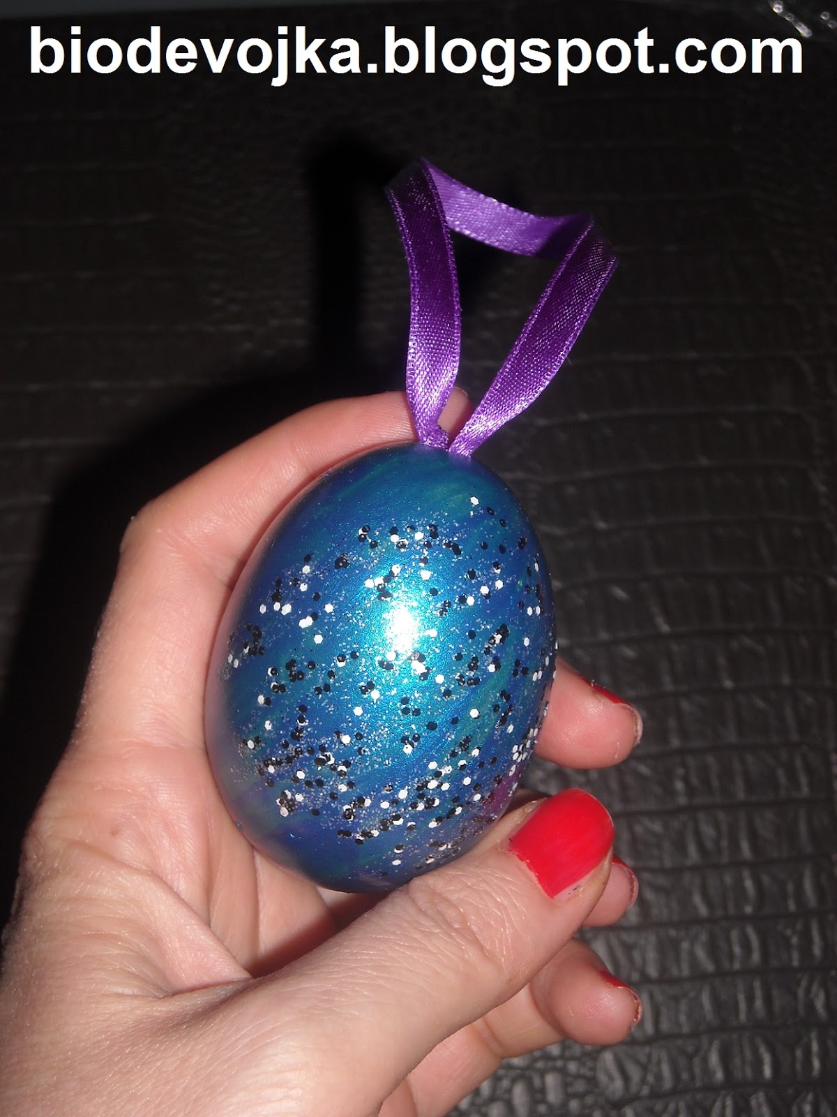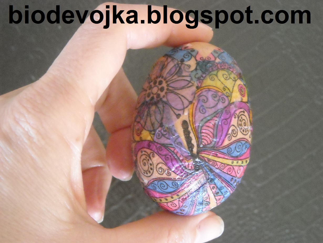 Ајде да ја живнеме малку темата. Јас годинава решив да направам велигденско украсно дрвце кое е традиција во повеќе западни земји. За оваа работа направив и тутпријал. Се надевам ќе ви се допадне. Поздрав Направи сам: украсно велигденско дрво Да да, добро прочитавте, може да имаме прекрасно украсено дрво не само за Нова година и Божиќ, туку и за Велигден. Само што овде лампионите ќе ги замениме со велигденски јајца, или подобро речено со лушпите од јајцата. Велигденското дрво е традиционално во повеќе западни земји и навистина изгледа многу интересно во просторијата каде сакаме да го поставиме. Традиционално ова дрво содржи дрвца и цветови типични за Велигден, како на пример цветови од праска или гранче од маслиново дрво, меѓутоа во зависност од она што го имате на располагање може да го персонализирате и да го направите со материјали и бои кои вам ви се допаѓаат. Целата идеа се состои во тоа што во една вазна (големината изберете ја сами) се ставаат разни гранчиња и цветови по ваш избор и се украсуваат со декорирани јајца. Во продавниците низ градов може да најдете навистина многу разни украсни велигденски јајца, меѓутоа може многу лесно да ги направите и сами (секако доколку сте љубители на проектите направи сам). Овие украси може да ги направите и со вашите деца, со што ќе ја поттикнете и развивате нивната креативност, а истовремено заедно ќе се забавувате. Ајде да започнеме со подготовката на украсните јајца. Ќе ви покажам неколку начини на кои може да го украсите јајцето, а вие секако одберете го она што вам најмногу ви се допаѓа. Пред да почнеме да ги украсуваме јајцата, најнапред потребно е да ја извадиме од внатре содржината (белката и жолчката), меѓутоа без да ја оштетиме лушпата на јајцето која ни е потребна за овој проект. Најнапред земете едно јајце и со помош на една игла (онаа за шиење) направете дупчиња на горниот и долниот врв на јајцето. Потребно е да се направт две дупчиња затоа што од едното ќе излегува составот на јајцето, а од другата ќе влегува воздух кој ќе ја олесни процедурата. Потребно е малку трпение. Мој совет ви е дупчето на горниот крај од јајцето (онаму каде сакате да го закачите) да биде помало, додека отворот на долниот крај може да биде и малку поголем (раширете го со помош на еден остар нож) со цел смесата полесно и побргу да излезе од самото јајце. Откако ќе ја извадите внатрешноста, јајцата убаво измијте ги со вода, оставете да се исушат и подготвени сме за декорацијата. Како што веќе напоменав, јајцата може да ги декорирате на разни начини, сѐ што треба да направите е да ја ослободите вашата фантазија. Во продолжение ќе видите на кои се начини јас ги декорирав јајцата за моето велигденско дрво. 1. Боење со лак за нокти Доколку имате лакови за нокти кои веќе не ги користите не ги фрлајте, туку искористете ги за овој проект. Земете го јајцето и со помош на лакот избојте го од сите страни (може да го направите во една боја или во повеќе бои да биде повесело). Откако лакот ќе се исуши, врз него може да нацртате нешто со друг лак, или пак како мене да ставите лак со светки за поинтересен ефект. 2. Техника декупаж со шарени салфетки Оваа техника е една од моите омилени, јајцето изгледа прекрасно, а воопшто не е тешко да се направи. Сѐ што ви е потребно е една шарена салфетка (може да биде велигденска, но и не мора). Одберете ги форм