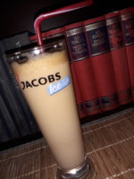 ладно: земам тегла ставам лајче нескафе лајче шеќер две-три коцки мраз и малце вода и затворена со капак ја мучкам дур се направи пена. Можеш и со апаратче за матење ако имаш, ама јас не го сакам, вака мучкано полесна пена има. Чашата во која ќе сервирам ја правам одвнатре по цела должина со чоколаден прелив. Ја туривам пената во чаша и до врв додавам ладно млеко. овде немам чоколадо топло: малку ладно млеко мучкам во тегла да се добие пена. во филџан ставам лајче нескафе лајче шеќер, туривам жешка вода до пола, ја додавам млечната пена и ако има потреба дополнувам со млеко