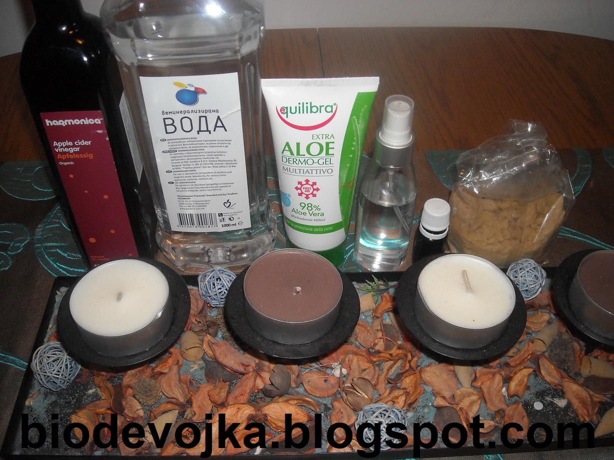 Здраво на сите, би сакала да ви предложам еден рецепт за домашен лак за коса кој многу лесно може да го направите доколку дома имате одредени состојки. Одлично ја зацврстува косата при разни фризури како и кога правите реп или пунџа и не сакате да ви летаат мали непослушни влакненца. Комплетно без алкохол. Поздрав Направи сам: природен лак за коса Лакот за коса е нешто без кое не може да се замисли стајлингот, особено кога станува збор за некој вид на фризура која треба да трае подолго време, или доколку ја собираме косата во пунџа и не сакаме да летаат мали непослушни влакненца на сите страни. Во продажба се нудат голем број на производи кои ветуваат сјајна и послушна коса и фризура која подолго трае. Сите тие навистина го прават она за кое се наменети, меѓутоа поголемиот дел од нив содржат состојки кои не се баш најпожелни ниту за нас, ниту за околината со оглед на тоа што овој производ е на испрскување и завршува токму во околината. Секако постојат и природни и органски лакови за коса, меѓутоа скоро сите содржат висок процент на алкохол кој со редовна употреба постепено го суши влакното, а тоа секако не ни е цел. Затоа во денешнава статија ќе ви предложам еден навистина лесен и природен лак за коса кој одлично го прави своето, а воедно е пријател и на околината која не опкружува. За неговата подготовка ќе ви требаат 10 мин., а ефектот ќе ве остави без зборови. Состојките кои се потребни за околу 60 мл. лак за коса се: - 3 супени лажици деминерализирана вода; - 2 супени лажици ружина вода (доклку немате ставете деминерализирана вода); - 2 до 3 кафени лажички шеќер; - 1 кафена лажичка јаболков оцет; - 1 кафена лажичка алое вера гел - 2 капки етерично масло (доколку немате не мора) Во една чашка ставете ги најнапред водата и ружината вода (доколку немате ружина вода во тој случај ставете 5 лажици деминерализирана вода) и додадете го шеќерот. Убаво измешајте додека да се стопи. Потоа додадете го алое вера гелот и јаболковиот оцет и повторно убаво промешајте. На крај додадете една до две капки етерично масло по ваш избор (јас додадов масло од роза). Целта на етеричното масло е да на некој начин го замаскира мирисот на оцетот, да не се чувствува во косата. Ставете ја смесата во едно чисто пластично или стаклено шишенце и вашиот лак за коса е готов. Зошто токму овие состојки Алое вера гелот е одличен за косата, ја омекнува и хидрира. Во една книга имам прочитано дека алое вера гелот содржи аминокиселини кои се многу слични на оние присутни во фоликулите на нашата коса, па затоа алое вера гелот има регенерирачко својство и дава голем сјај на косата. Оцетот има коселкаста ph вредност која е од огромнo значење за убавината и здравјето на нашата коса и дава огромен сјај. Идеалната ph вредност на нашата коса е помеѓу 4 и 5 така да јаболковиот оцет навистина помага во оддржување на истата. Исто така јаболковиот оцет ја затвора кутикулата на влакното и како резултат на тоа косата е сјајна и мазна. Ова е многу важен факт затоа што на тој начин ја задржуваме природната влага во косата, и на некој начин ја спречуваме појавата на расцветани врвови. Шеќерот во овој рецепт е оној кој го прави всушност зацврстувањето на косата односно ефектот на лак. Јас лично ставив околу две ипол кафени лажички шеќер затоа што според мене цврстината која ја дава на косата е идеална, ни многу јако ни мн