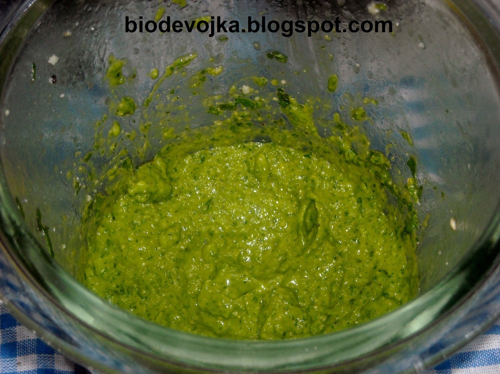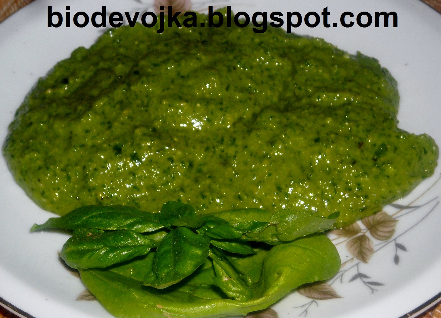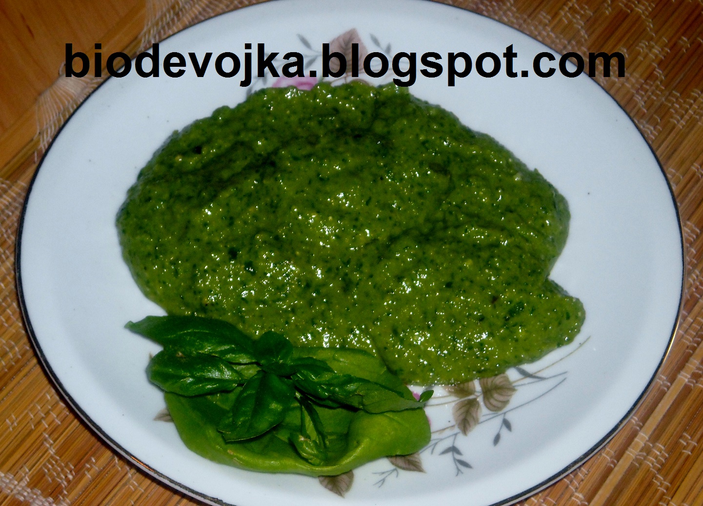 Здраво девојки, еве еден од моите најомилени сосови или намаз кога станува збор за тестенини (паста). Песто ала џеновезе. Му нема рамен а многу е лесен за подготовка. Еве ви комплетен рецепт со слики онака како што го приготвувам јас. Поздрав. Домашен намаз од босилек (Pesto alla Genovese) Здраво драги мои, еве ме повторно во рубриката за храна, овојпат со еден многу вкусен рецепт за намаз од босилек кој, верувајте ми, просто ќе ве воодушеви. Овој вид на намаз оригинално е познат под името песто ала џеновезе (Pesto alla Genovese), и е дефинитивно еден од моите најомилени намази кога станува збор за убав тањир паста. Во продажба може да најдете и готови теглички, меѓутоа во некои марки има конзерванси. Доколку обожавате да готвите и експериментирате во сопствените кујни, еве како да го подготвите сами дома. За 4 лица потребни ви се: - 100 гр. свеж босилек; - 15 грама индиски ореви; - 50 грама пармиџано; - 1 чешне лук; - малку маслиново масло Во еден блендер ставете ги сите состојки и блендирајте се додека не добиете убава кремаста структура. Ете вашиот намаз е готов. Обично во оригиналните рецепти наместо индиски ореви се користат пињоли, меѓутоа прво многу е тешко да се најдат кај нас, а друго доколку успеете да ги најдете чинат 2500 денари за кило. Оваа замена со индиски ореви е најверодостојна по вкус на овој намаз. Обично традиционално се подготвува рачно во сад за толчење на зачини, меѓутоа за тоа е потребно доста време. Доколку немате толку време или пак таков сад, може да го подготвите и во блендер како што ви прикажав погоре. Откако ќе ги сварите тестенините (по ваш избор шпагети, макарони или друг вид на паста), нанесете малку маслиново масло врз тестенините за да не се залепат и потоа врз нив ставете го намазот и убаво промешајте. Вкусот на овој намаз е фантастичен и незаменлив и доколку сакате да ги изненадите вашите гости со нешто уникатно ви препорачувам да го направите. Пастата може да ја конзумирате само со намазот, или по ваш вкус да ја збогатите со домат и моцарела. Се надевам дека и овој рецепт ви се допадна и дека ќе се обидете да го направите. Поздрав и до скоро читање. Вики