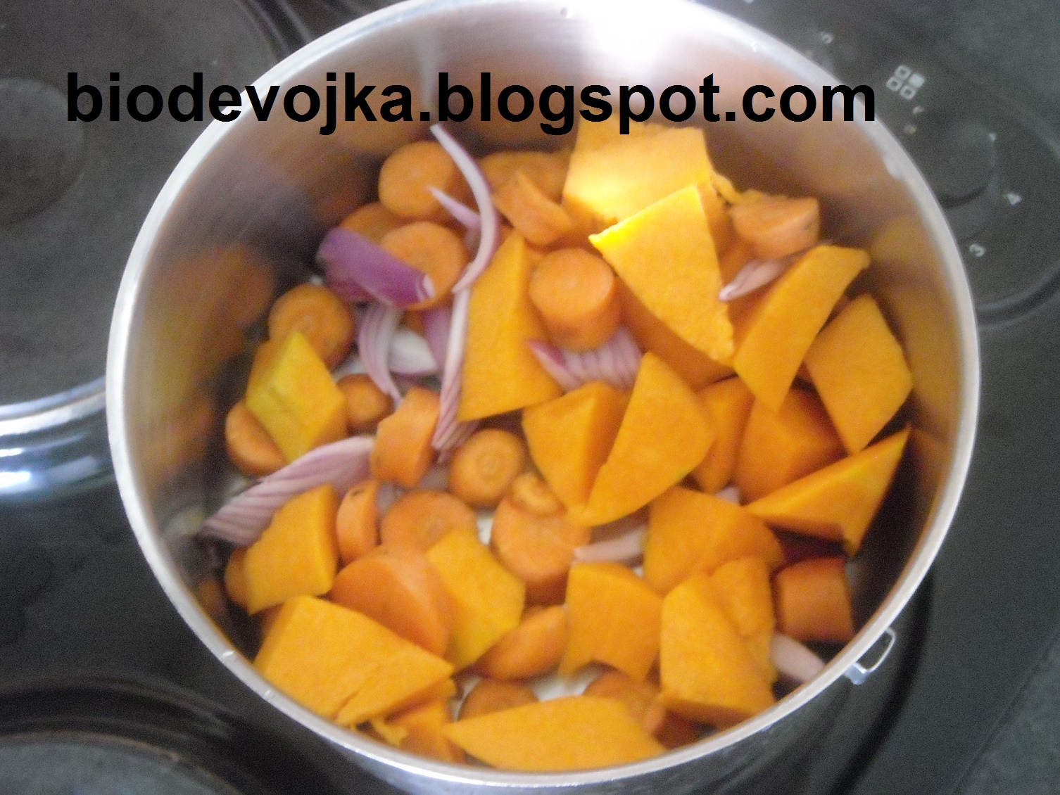 незнам дали имате пробано домасна крем супа од тиква јас ја направив имногу ни се допадна и на мене и на мм 500гр тиква 3,4 компири 3 моркова 500 мл вода коцка за супа сол црн пипер кари зацин сето тоа лупи и се сеце на мали коцки се вари додека не омекне,потоа се става во блендер и се меса се мозе и со обицен миксер и се додава 500мл вода зовриена со коцката за супа.Oткако убаво ке се измеса се врака на оган да поврие и се додава сол,црн пипер и кари.ако е многу густо мозете да додадете усте малце вода!! добар апетит