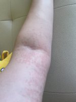 Мајки скоро ве прашував тука и пишав дека имам огромно чешање во стомакот кај што боцкав клексани. Почнав во рака и таму исто. Ама овиа два дена се исфрлив многу, цело тело ме чеша. Посебно едната рака, гради, стомак и грб Сменив омекнувач дека Ленор ставав, а знам дека е појак. Можно ли е од клексаните ваква реакција или хормони Смејам ли да правам некој тест за алергија? Ќе ставам слика каква ми е раката. Спојлер: Рака